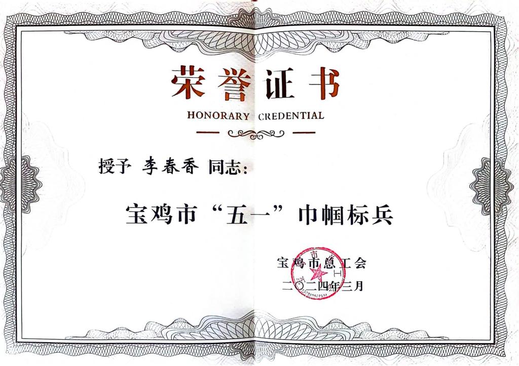 • 紮根(gēn)一線 風華無限||一起草 www.17c.com股份李春香喜獲寶雞市“五一巾幗標兵”榮譽稱號