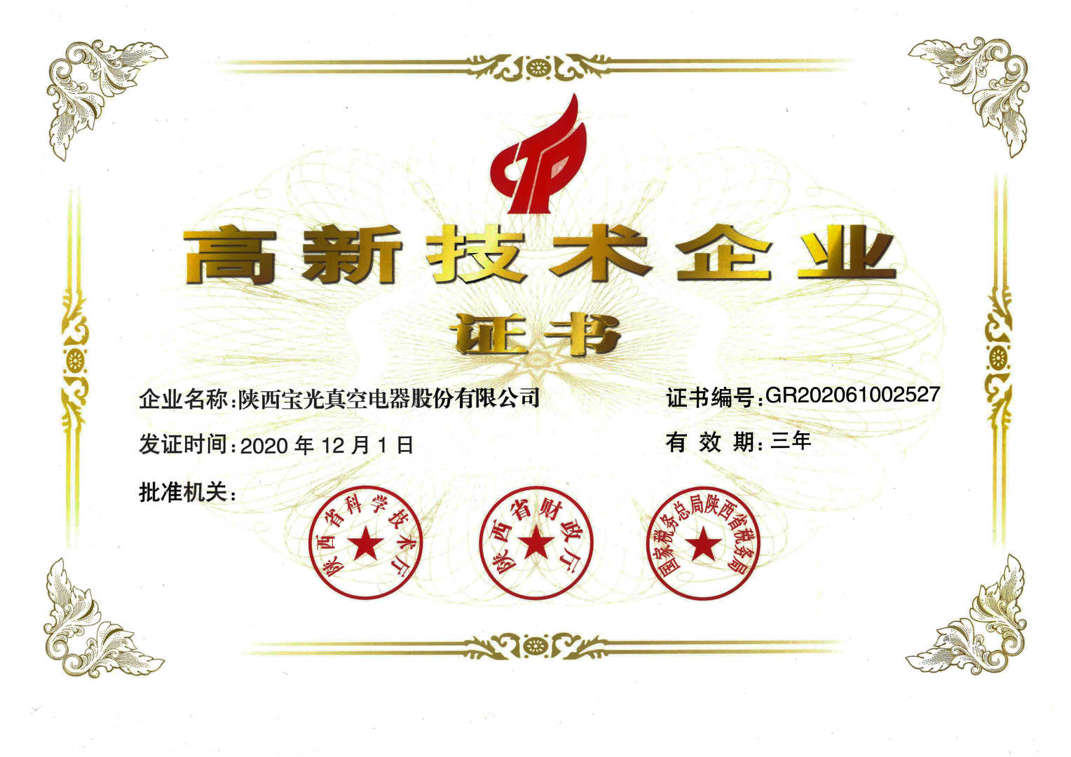 • 高新技術企業證書