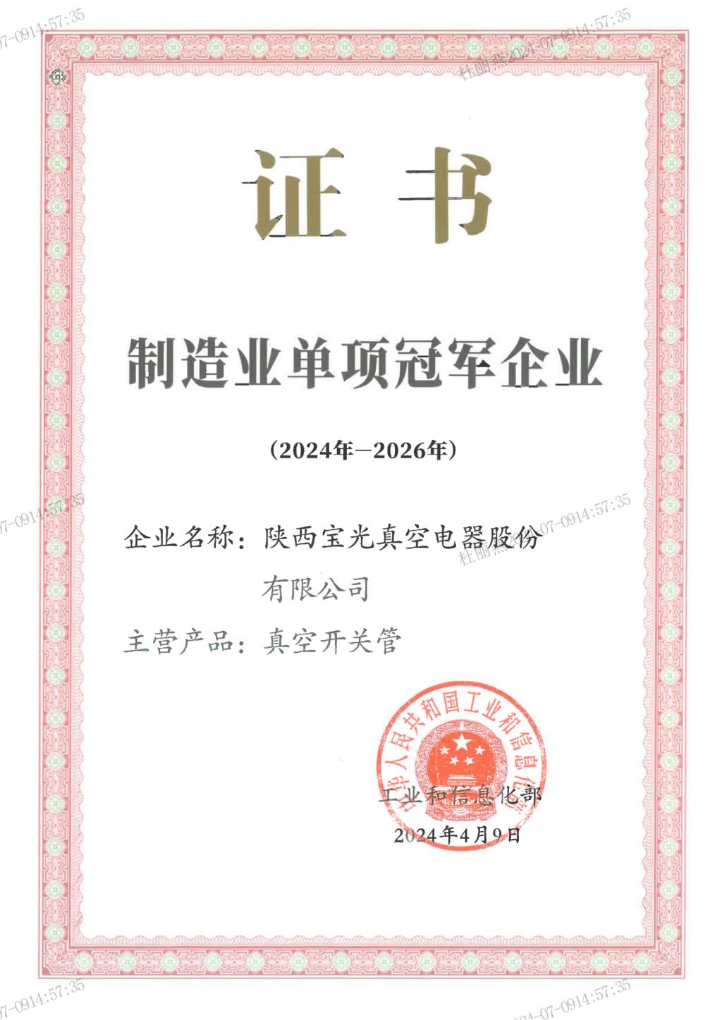 • 一起草 www.17c.com牌真空滅弧室被授(shòu)予陝西省(shěng)名牌產品稱號(hào)