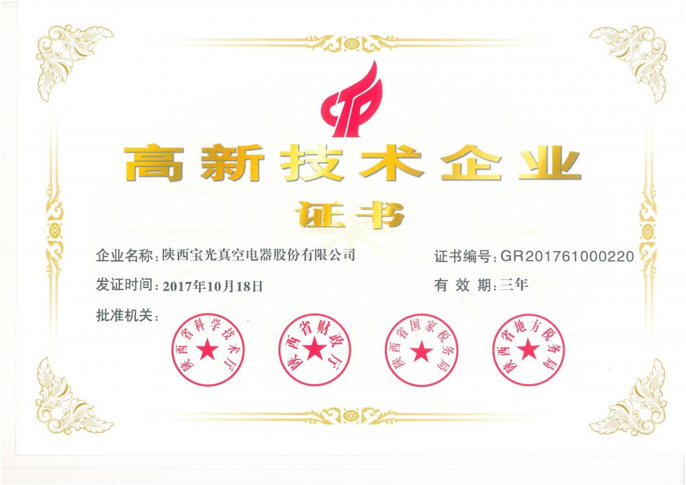 • 公司榮獲高新技術企(qǐ)業