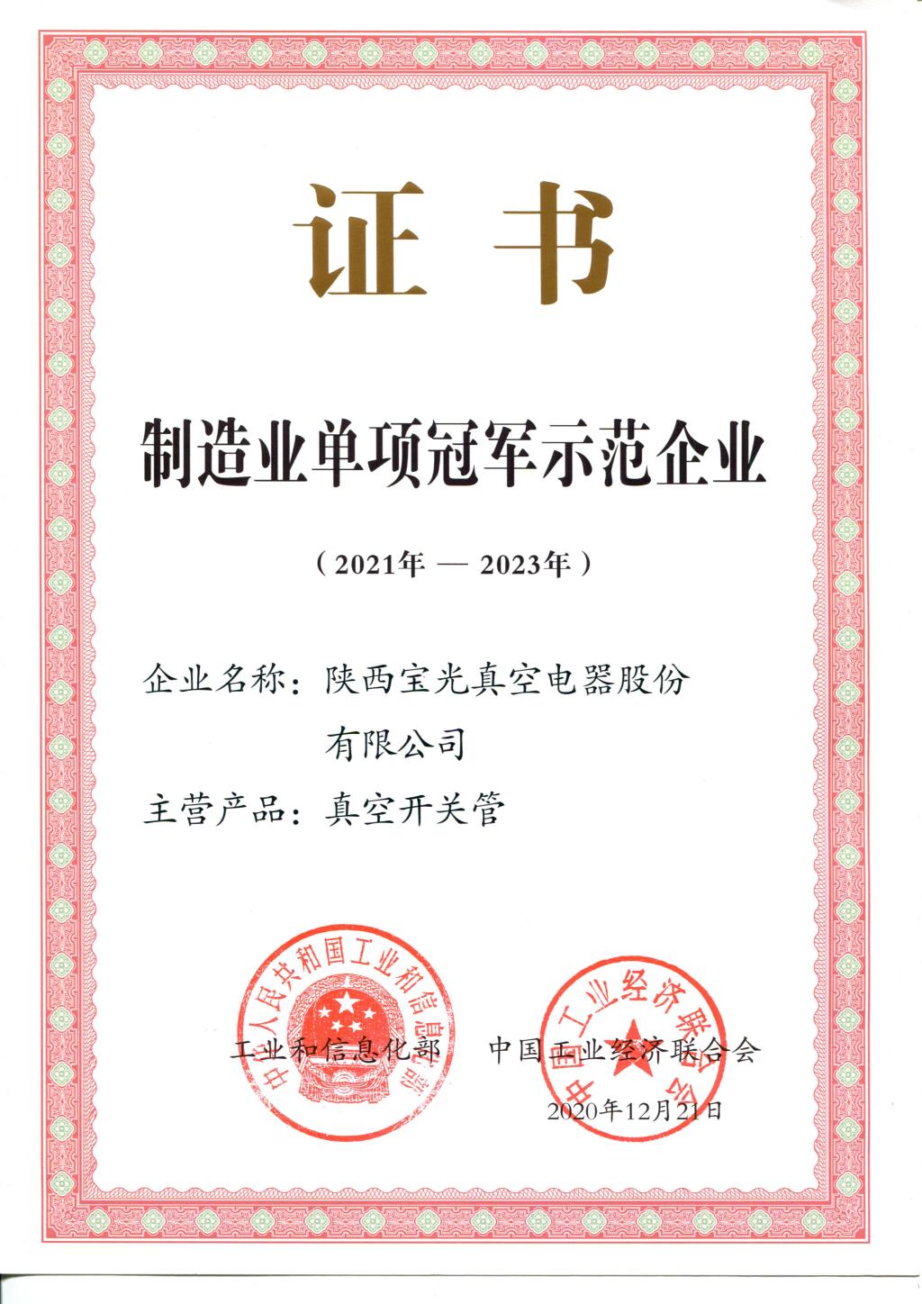 • 製造業單項冠軍(jun1)企(qǐ)業(2021-2023)