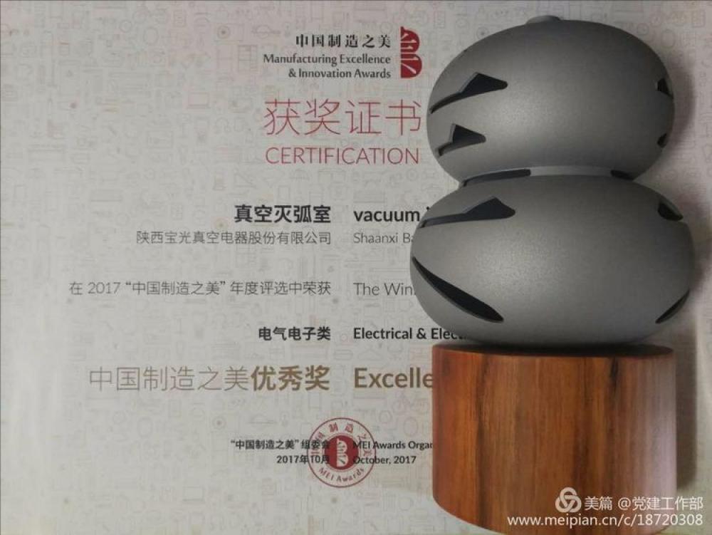 • 真空滅弧室榮獲中國製造之美優秀獎