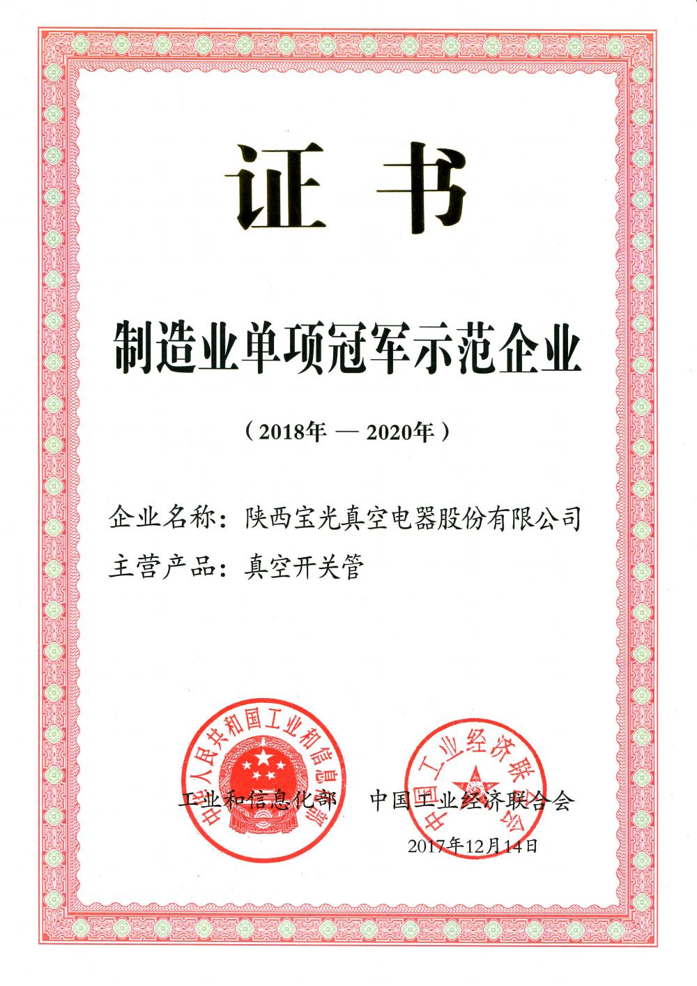 • 製(zhì)造業(yè)單項冠軍示範企業