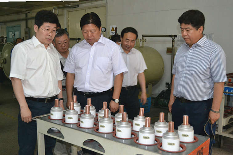 在公司領(lǐng)導的陪同(tóng)下,方副市長一行(háng)首先參觀了公司真空(kōng)滅弧室生產線。
