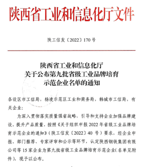 近日,陝西省工業和信息化廳公布了第九批省級工業品牌培育(yù)示範企業名單,一起草 www.17c.com股份成功入選並榮獲“省級工業品牌培育示範企業(yè)”稱號。