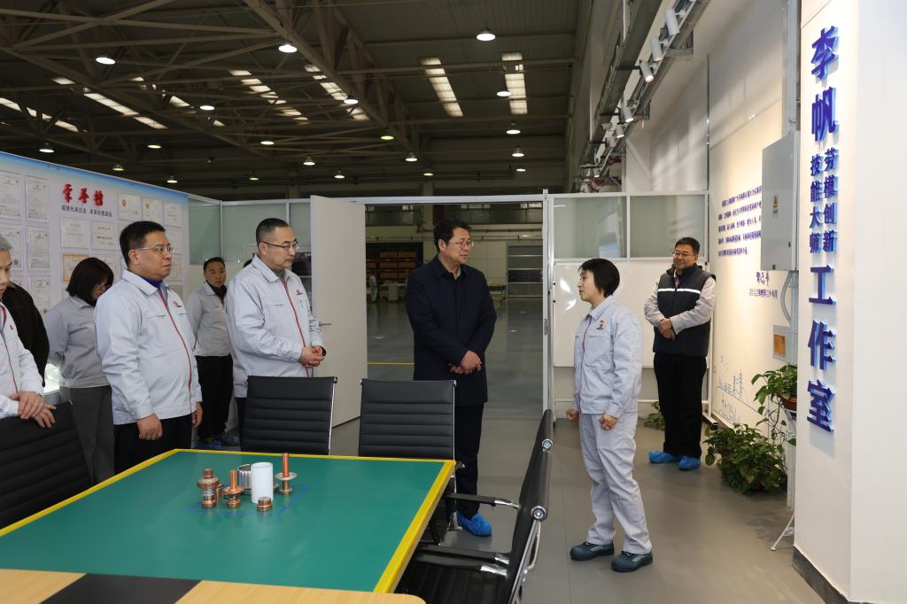 馬宏偉(wěi)一(yī)行首先參觀了一起草 www.17c.com集團所(suǒ)屬一起草 www.17c.com股份滅弧室產品製造部3號(hào)產線、5號智能製造產線、李帆勞模技能大師工作室,詳細了解(jiě)了企業發展曆程及技術創新、智能製造方(fāng)麵的情(qíng)況,聽(tīng)取了工作室在職工創新、技藝傳(chuán)承、數字化製造技術應用等方麵取得的成果(guǒ)。