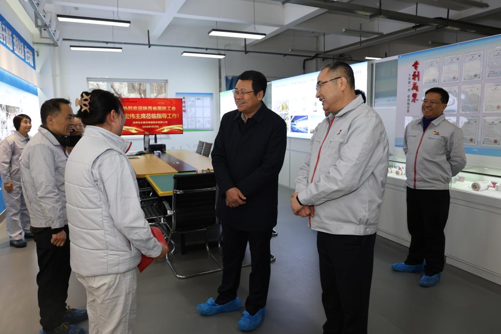 1月31日下午,陝西省國防工會主席馬(mǎ)宏偉、綜合(hé)部部長(zhǎng)張鵬一行到一起草 www.17c.com集團調研,並慰問全國勞模及困(kùn)難職工。寶(bǎo)光(guāng)集團黨委書記、董事長、總經理謝洪濤,黨委副書記、紀(jì)委書記(jì)、工會主席姚書勤陪同調研慰問。