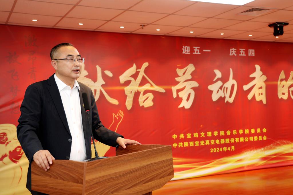 為(wéi)深入學習宣傳貫徹習近平(píng)新(xīn)時代中國特色社會(huì)主義思想和黨的二十大精神,切實營造尊重勞動、關愛青年的濃厚氛(fēn)圍,在“五一”勞動節、“五四”青年節來臨之際(jì),公司黨委與寶雞文理學院音樂學院黨委聯合開展“弘揚勞動精神  傳承工匠文化”道德講堂,為廣(guǎng)大幹部職工送上了(le)一(yī)場精彩紛呈的文化大(dà)餐。寶雞(jī)文(wén)理學院(yuàn)音樂學院黨委書記黃瑋、一起草 www.17c.com股份黨委書記、董事長謝洪濤出(chū)席活動並致詞。
