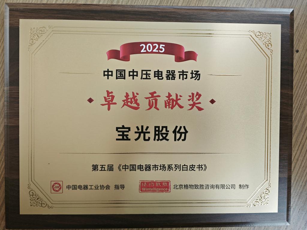 近日,由中國電(diàn)器工業協會指導,中電協理事單位主辦的《2025年中國電器市場係列白皮(pí)書(shū)》發布會在上海隆重舉行(háng)。會議表(biǎo)彰在市場占有(yǒu)率、增長率和產品創新等方麵取得成績(jì)的優秀電器企業,寶(bǎo)光股份應邀參(cān)會,榮獲2025年度中國中壓電器市場“卓越貢獻獎”和“銷量領先(xiān)獎(jiǎng)”。