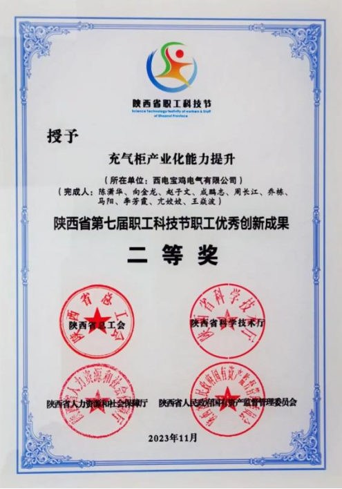陝西省職工優秀創新成果二等獎——西電寶雞電氣 “充氣櫃產業能力提升”