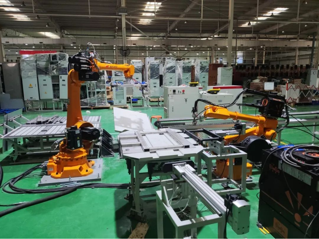 充氣(qì)櫃焊接項目是在充(chōng)氣櫃(guì)氣箱單件筋板焊接時采用搬運機器人和焊接機器人相互配合作業,將人工手工作(zuò)業模式轉向自動化方向。項目實施後,單麵箱(xiāng)體筋板從手工焊接2.5小時縮(suō)短至(zhì)自動化焊接1.5小時,同時(shí)有效提升焊縫的一致性,整體(tǐ)提升了焊接的外觀與質量。