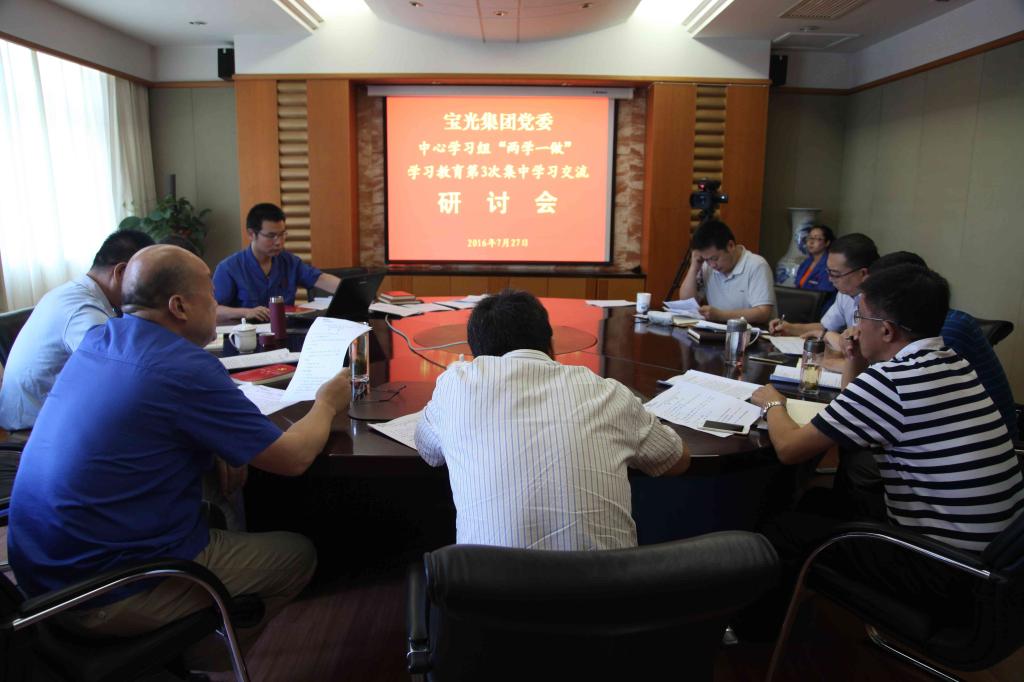 7月(yuè)27日上午,寶(bǎo)光集團黨委中心學習組在科技大(dà)樓四樓小會議室召開“兩學一做”學(xué)習教育第三次集中學習研討會。公司領導李軍望、雒濤、嶽永學(xué)、李波、韓占青、張軍、袁軍為、黨向東共8名同(tóng)誌參加了學習研討,研討(tǎo)會由黨(dǎng)委書(shū)記雒濤(tāo)主持。