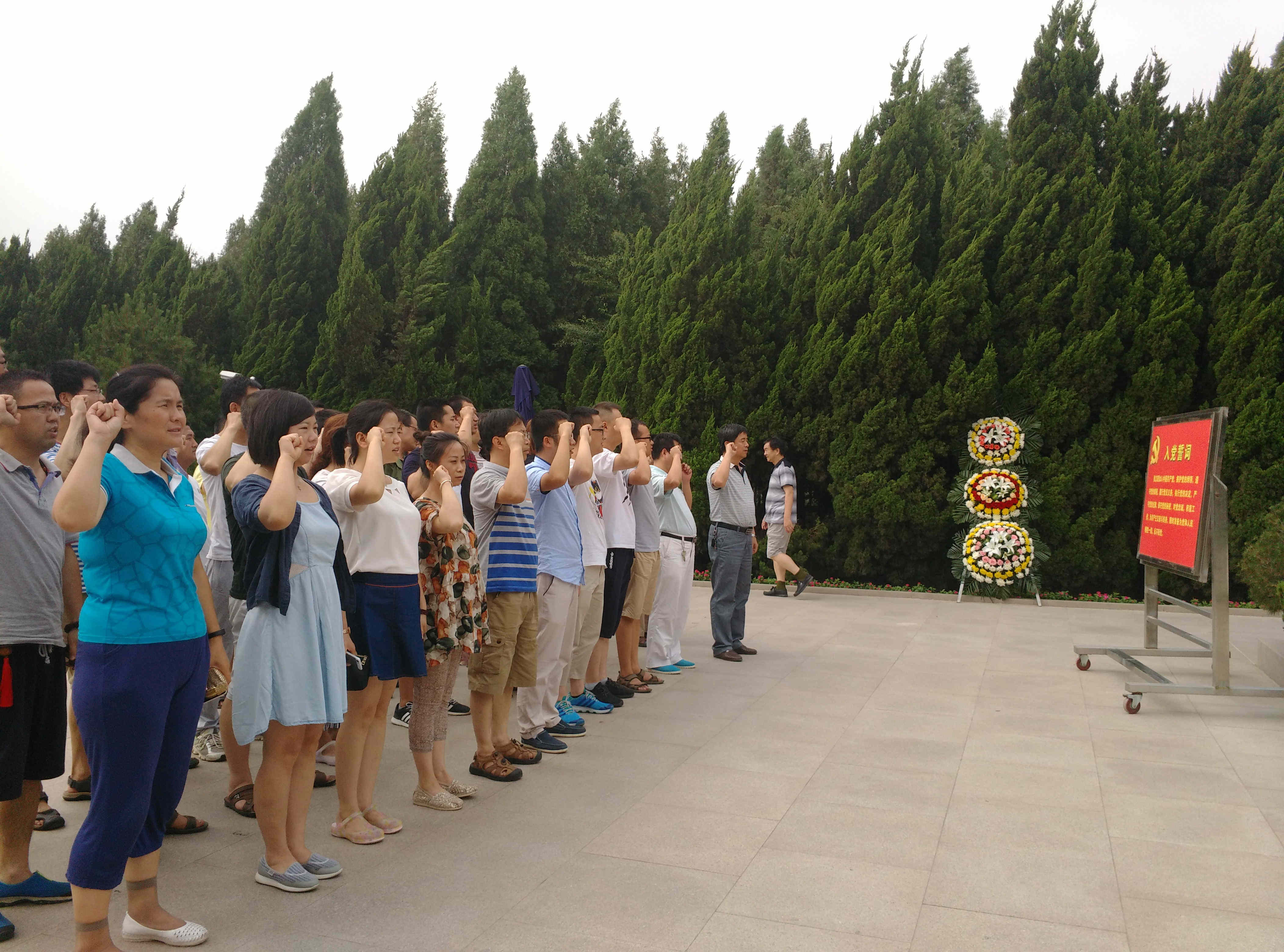 達到習(xí)仲勳陵園後,固封極柱事業部全體黨員,帶著無比崇敬的心情,列隊來到塑像前,莊嚴舉起右手,重溫了入黨誓詞,向革命先輩鞠躬(gōng)敬禮,並在習(xí)仲勳雕像(xiàng)前合影紀念。