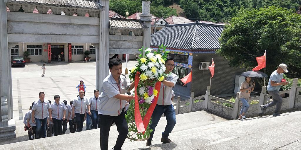 在紅軍鎮(zhèn),全體黨員步行來到紅軍英雄紀念(niàn)碑前,向革命先烈敬獻花籃,並向烈士三鞠(jū)躬,緬(miǎn)懷先(xiān)烈的豐功偉績。大家(jiā)莊嚴肅立,麵向黨旗(qí),舉起右拳,重溫入黨誓詞,表達了(le)自己永遠跟黨走的(de)信念(niàn)和決心。