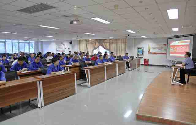 為加強黨(dǎng)員對新黨章及十九大精神的理解(jiě),推動黨的十九大精(jīng)神(shén)進車(chē)間、進班組活動持續深入,使廣大黨員幹(gàn)部職工深刻領會十九大精神(shén)的豐富內涵,學會用(yòng)習近平新時代中國(guó)特色社會主義思想指(zhǐ)導工作,6月6日19:30時,公司(sī)紀委書記、工會主席(xí)付宗喜同誌在科技大樓(lóu)二樓大會議室講授了以“學習新黨章不斷提升黨性修養”為(wéi)主題的專題黨課。公司工會委(wěi)員會委員、各分會主席,團委委員、各團支(zhī)部書(shū)記(jì),以及黨群黨支部(bù)和零件產品製造部黨支部黨員共90餘(yú)人聆聽(tīng)了專題(tí)黨課。